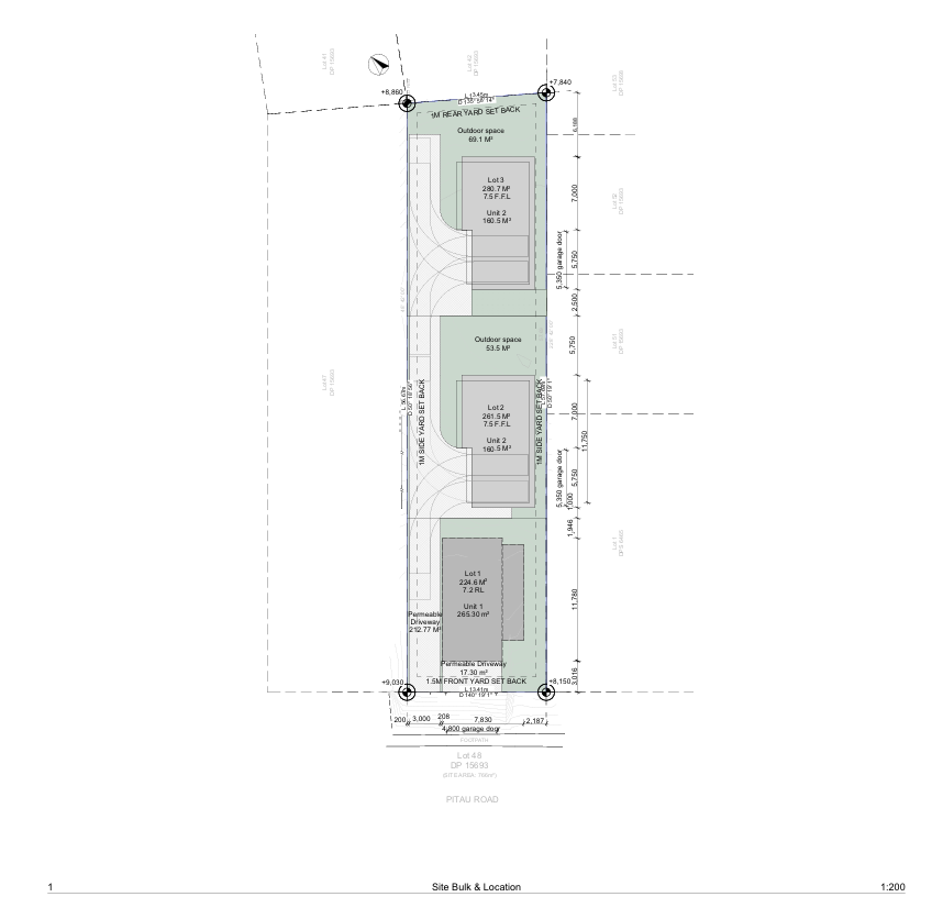 Site feasibility study, 770 m2, Mount Maunganui (three-new builds)